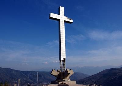 I još k tome iz istih pobuda nad gradom se izdiže golemi, noću nametljivo osvijetljeni križ s istom porukom za koji je dostatan komentar dobroćudnog Muje iz bosanskog vica koji na pitanje što misli o tome križu kaže da je taj križ veliki plus za Mostar. Kada dođem u Mostar i pogledam u taj toranj i križ nad Mostarom, zastidim se kao kršćanin i vjernik.