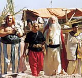 E, ako ste mislili da ću vam objasniti kako su se Egipćani i Gali našli zajedno, odnosno kako je Numerobis pronašao Astreixa (Christian Clavier) i Obelixa (Gerard Depardieu), prevarili ste se! Ali zato ću vam otkriti neke stvari koje su meni kao malom čitaču bile zanimljive, a ima ih i u ovom filmu. Dakle, kao prvo riječ je o gusarima (znate one, crvenobradi kapetan, crnac na jarbolskoj izvidnici i ostala ekipa), a oni su potopljeni u ovoj misiji od svojih starih znanaca Asterixa i Obelixa, čak tri puta. Kao drugo riječ je i o tome da mi je Asterix napokon postao malo simpatičniji, jer više ne kenja prostodušnom Obelixu onoliko koliko je to radio prije, a što je masu klinaca zajedno sa mnom žešće iritiralo. Kad smo već ugnjetavanja jadnog Obelixa, moramo se upitati: Pa zašto mu napokon ne daju gutljaj čarobnog napitka? Pa šta ako je kao mali upao u kotao s njim? E pa, moram vam nešto reći, napokon su mu ga dali. Doduše onda kada je to njima odgovaralo, ali