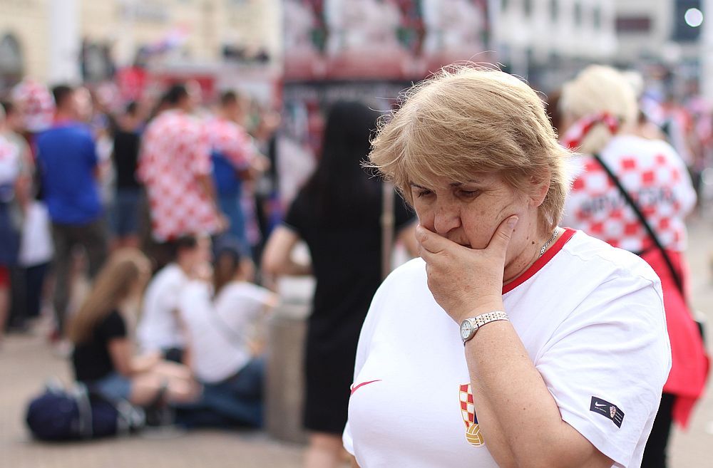 Hrvatska nogometna reprezentacija izgubila je u finalu Svjetskog prvenstva u nogometu, koje je održano u Rusiji. Pred velikim ekranom u Zagrebu, na Trgu bana Jelačića, utakmicu je gledalo par desetaka tisuća ljudi, možda i više, u onoj gužvi nismo uspjeli izbrojati. Bilo je tužnih i nasmijanih ljudi. Učinilo nam se, ovih posljednjih puno više. Incidentne situacije na Trgu nismo vidjeli.