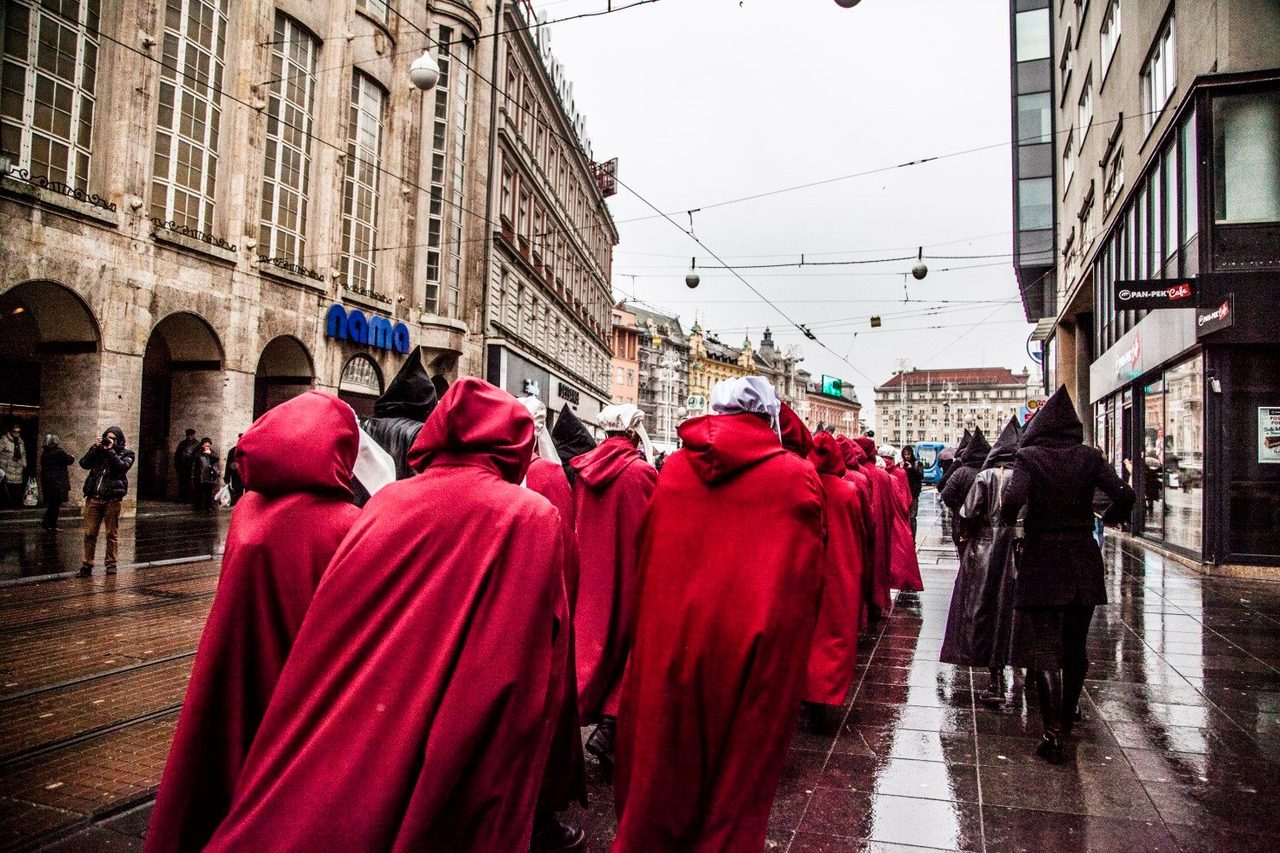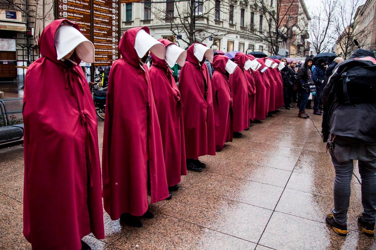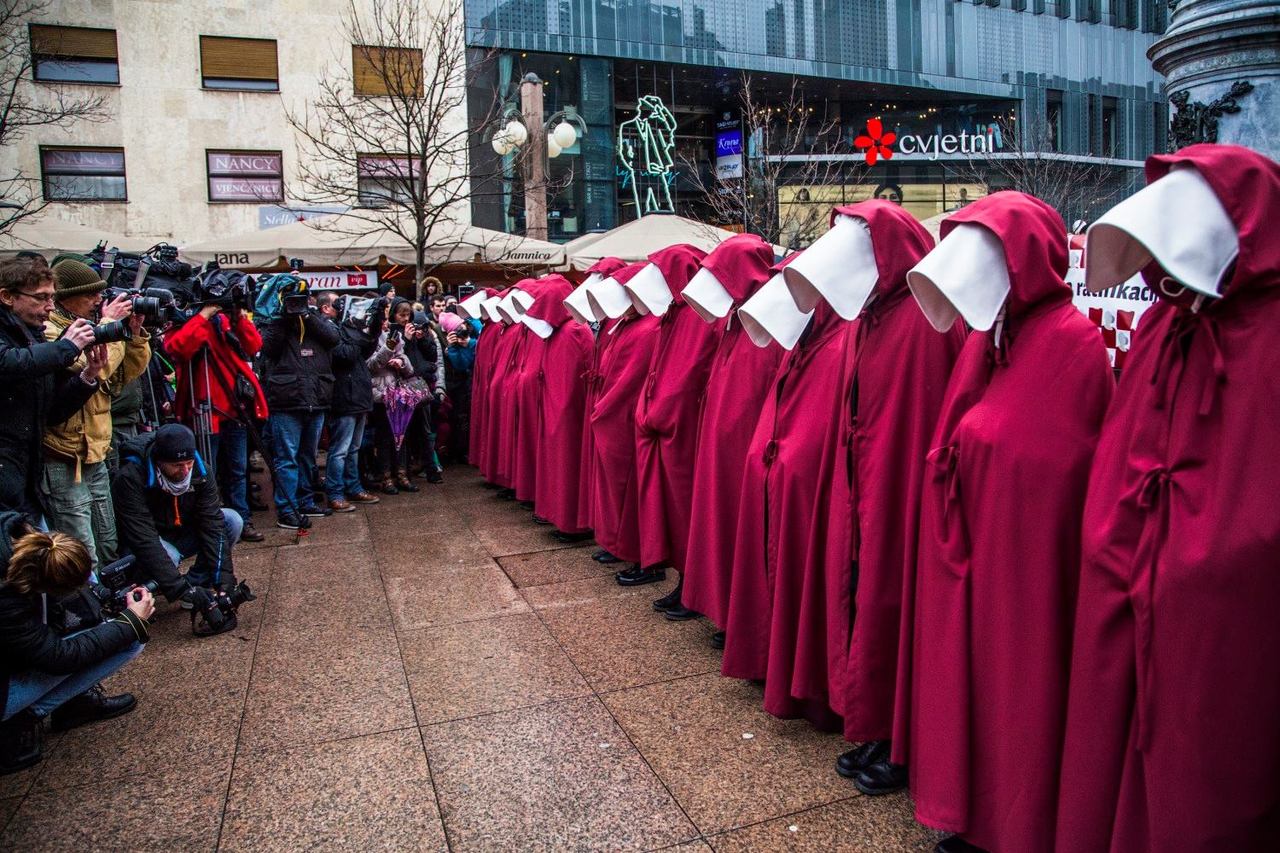 Oni koji su gledali prvu sezonu serije „Sluškinjina priča“ snimljenoj prema distopijskom romanu Margaret Atwood, odore su sigurno odmah prepoznali i vjerojatno promrzli od prizora koji upozorava na scenarij koji nam se može dogoditi ukoliko kojim slučajem neke klerikalne inicijative „dođu na svoje“. Ostali će, zahvaljujući medijima, kasnije doznati da se radilo o efektnoj prosvjednoj akciji pod nazivom „Sluškinje ustaju za ratifikaciju Istanbulske konvencije“ kojom se željelo ukazati na važnost ratifikacije Konvencije o sprječavanju i borbi protiv nasilja nad ženama i nasilja u obitelji.