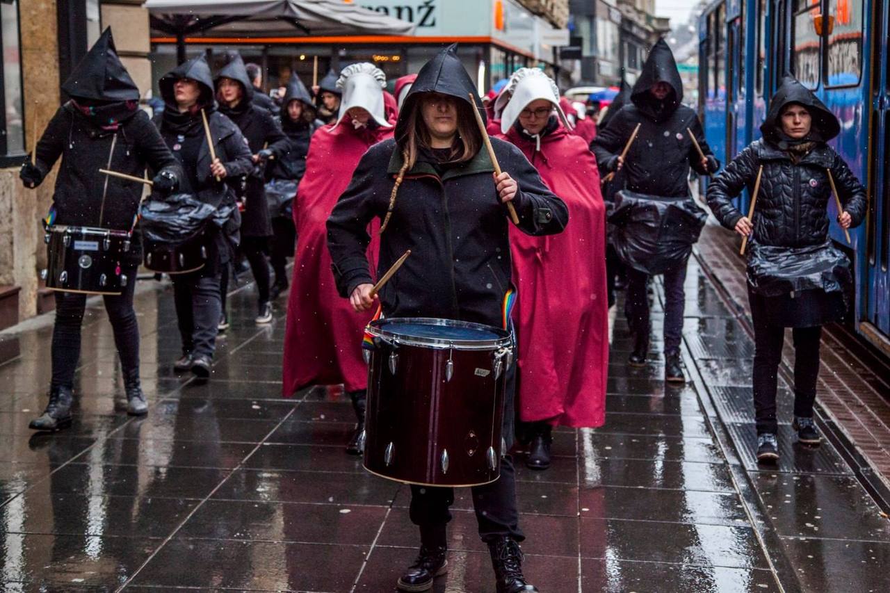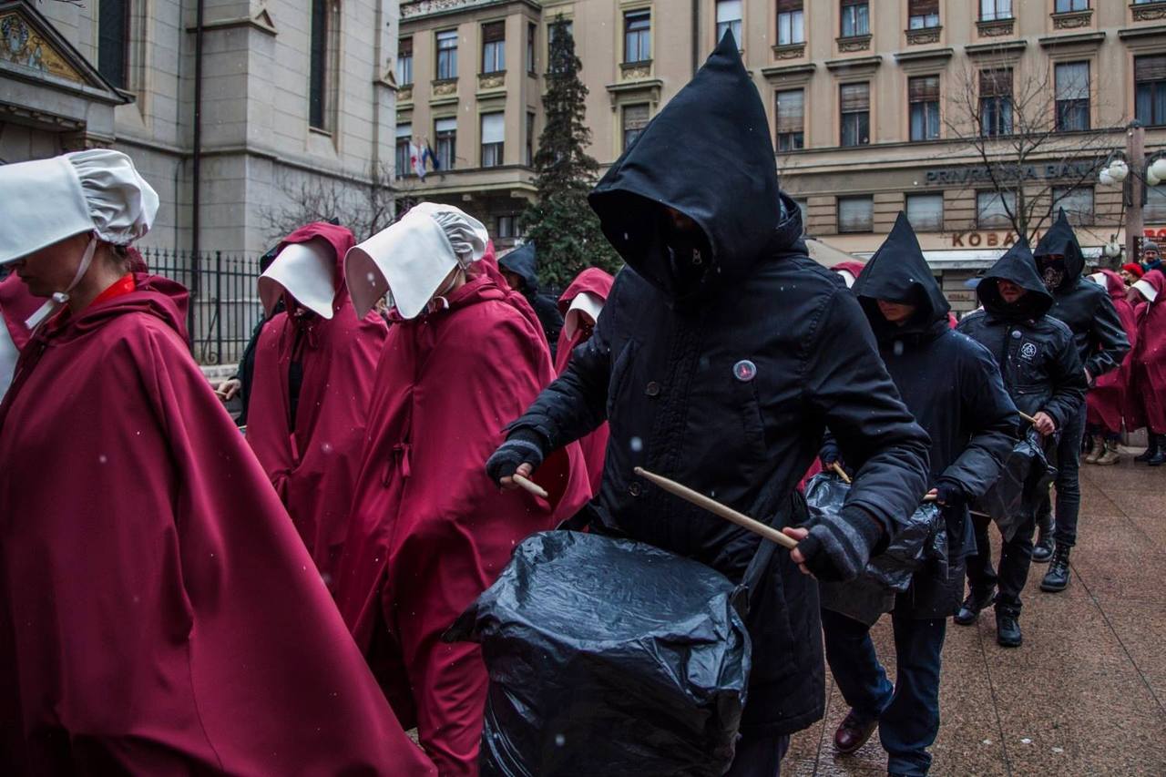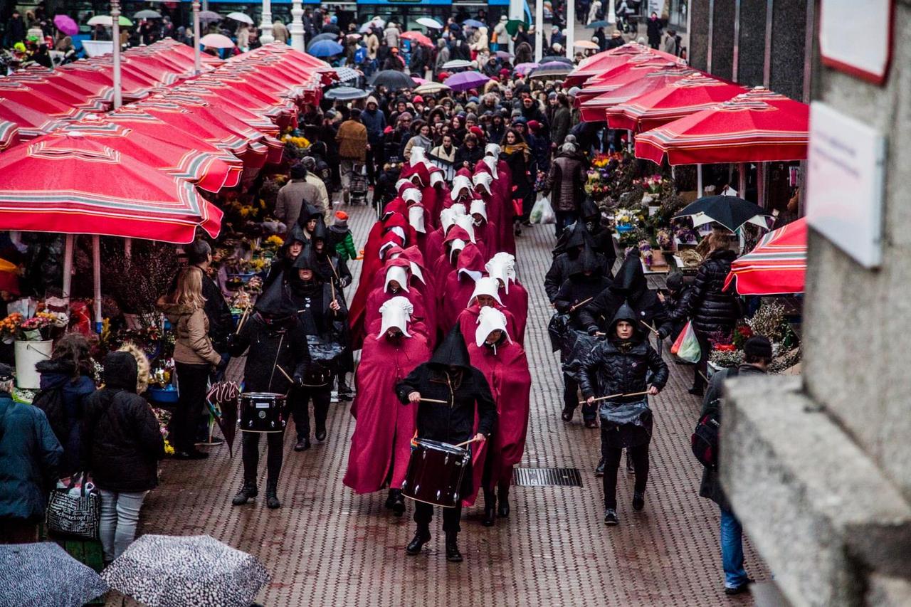 Oni koji su gledali prvu sezonu serije „Sluškinjina priča“ snimljenoj prema distopijskom romanu Margaret Atwood, odore su sigurno odmah prepoznali i vjerojatno promrzli od prizora koji upozorava na scenarij koji nam se može dogoditi ukoliko kojim slučajem neke klerikalne inicijative „dođu na svoje“. Ostali će, zahvaljujući medijima, kasnije doznati da se radilo o efektnoj prosvjednoj akciji pod nazivom „Sluškinje ustaju za ratifikaciju Istanbulske konvencije“ kojom se željelo ukazati na važnost ratifikacije Konvencije o sprječavanju i borbi protiv nasilja nad ženama i nasilja u obitelji.