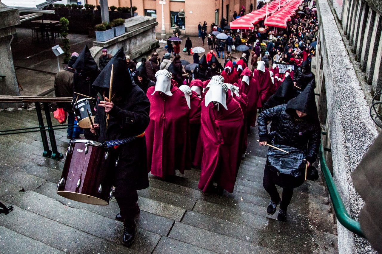 Povorku je pratila i fotografkinja Mirela Pinđak i donijela nam sjajne fotografije koje izvrsno dočaravaju turobnost života koji bismo mogli živjeti ako dopustimo da nas uvuku u „Sluškinjinu priču“.