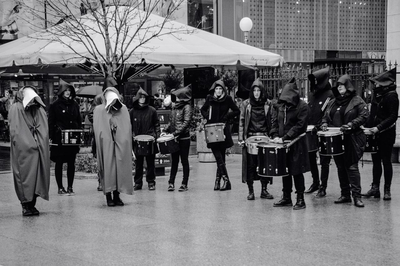 Neobična maskirana povorka jučer je iznenadila one koji su se oko podneva našli u središtu Zagreba. Tridesetak žena, zagrnutih u dugačke crvene odore, pognute glave koračalo je gradom u pratnji u crno obučenih bubnjarki i bubnjara a s krabuljama na glavi.