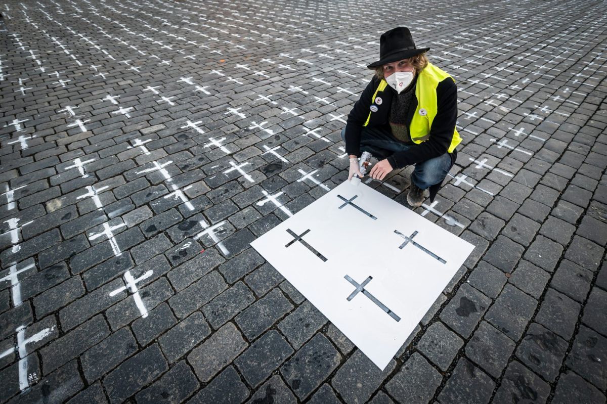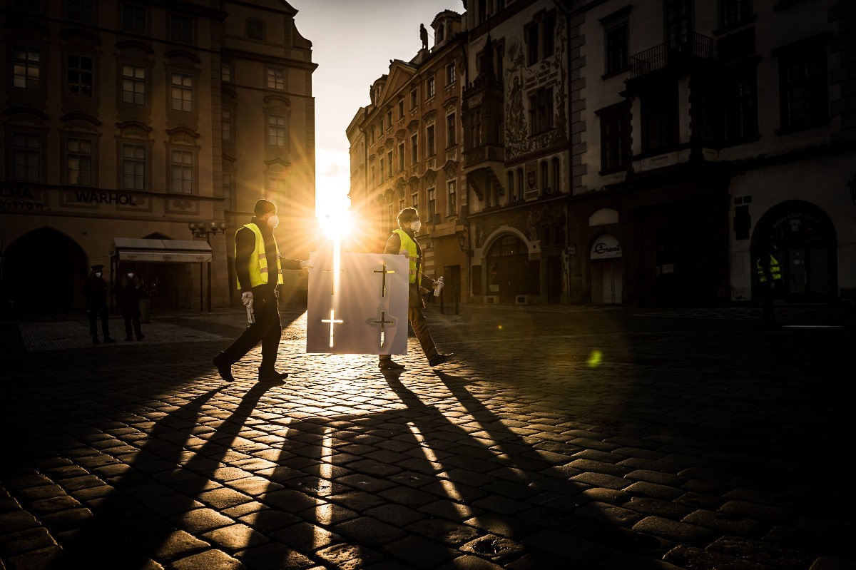 Točno prije godinu dana Covid-19 prouzročio je prvu smrt u Češkoj. Od tada je umrlo još 24.809 ljudi. Staroměstské náměstí, stari gradski trg, osvanuo je jutros sa skoro 25.000 križeva.