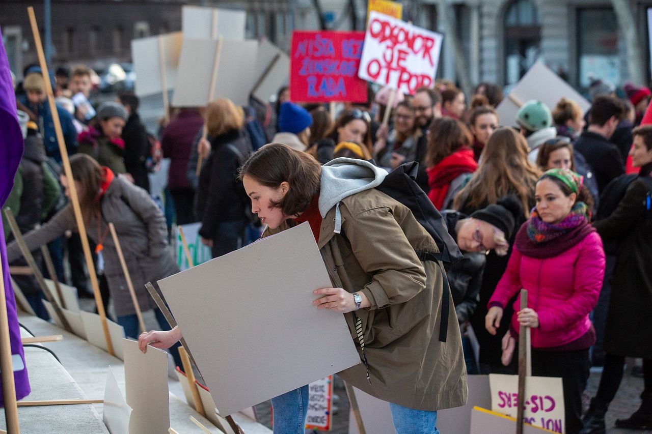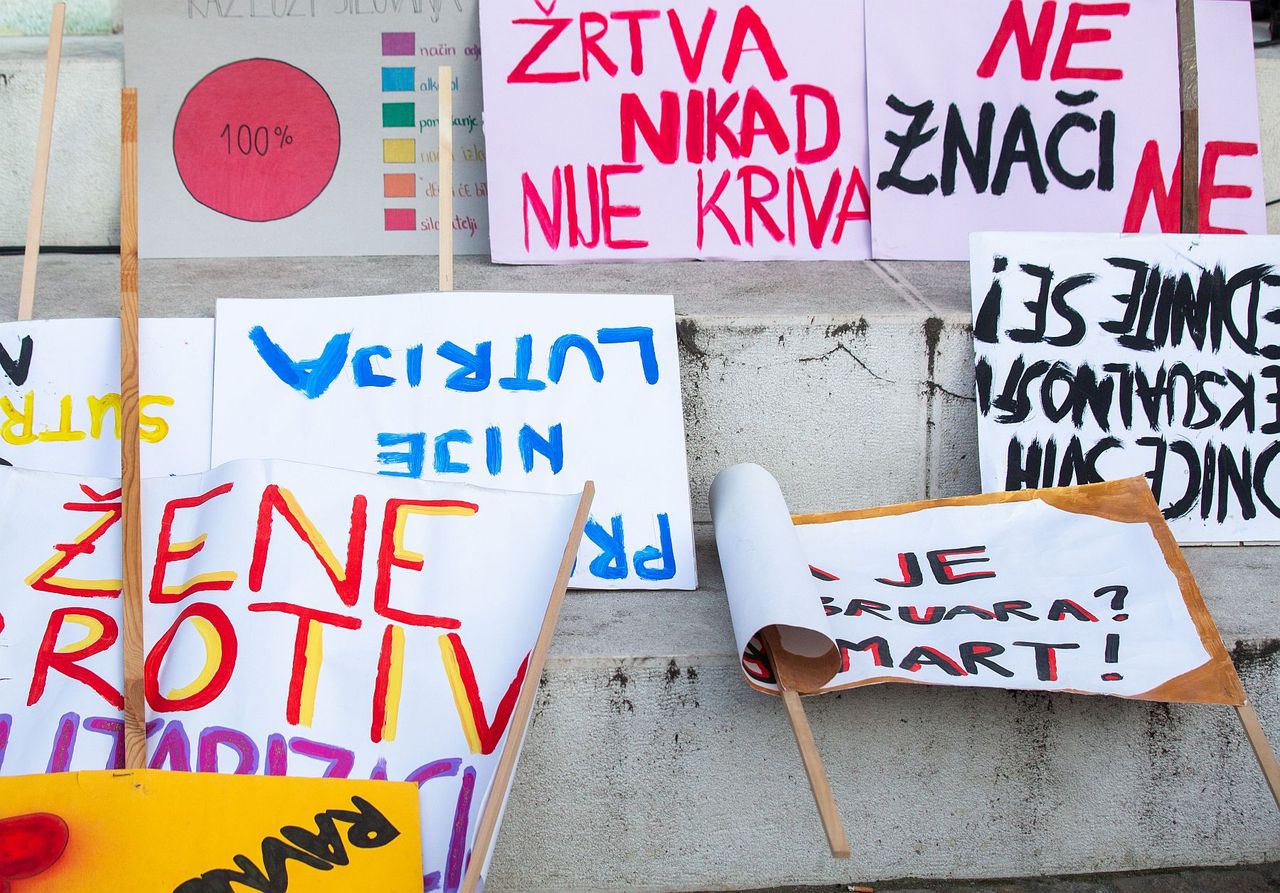 Nešto dalje jedan je mladić nosio transparent na kojem je zapisana crna hrvatska statistika. „Svakih 28 dana ubijena je jedna žena“, pisalo je. „Ni pokorne, ni pokorene“, „Bori se kao žensko!“, „Žrtva nikad nije kriva“, „Jedna od 20 žena prijavi silovanje“, „Cvijeće je lijepo, al' draža su nam prava“, „Ženska prava nisu pičkin dim“, „NE znači NE“, „I jedanput je nasilje“, „Ništa bez ženskog rada“, samo su neke od poruka zabilježenima na transparentima, a hit dana vjerojatno je onaj na kojem je pisalo – „Skini mi se s pičke“.