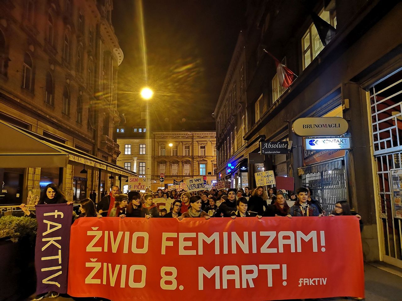 „Ne slušate nas i podcjenjujete nas, mislite da smo razjedinjene te da su nas vaša desetljeća zatiranja solidarnosti i inzistiranja na individualnosti oslabila. Svaki glas, svaki prkos, svaki otpor govori drugačije. Drugarstvo i sestrinstvo u pet gradova u Hrvatskoj, više gradova u regiji, diljem cijelog svijeta, danas i cijele godine“, poruka je koju su uputile aktivistkinje iz feminističkog kolektiva fAKTIV, dok je kolektiv „Žene ženama“ donio veliki transparent sa sa snažnom porukom. Na njemu je stajalo – „Ne mogu nas sve pobiti“ – a odnosi se na nasilje koje se događa na granicama Europe prema migrantkinjama i migrantima.