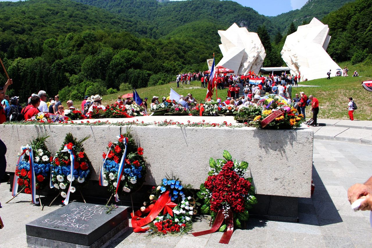 Donosimo fotografije s obilježavanja 76. godišnjice Bitke na Sutjesci, iz Memorijalnog kompleksa Tjentište, podignutog u znak sjećanja na žrtvu partizanskih jedinica u najvećoj bitki koju su u Drugom svjetskom ratu one vodile pod zapovjedništvom Josipa Broza Tita.