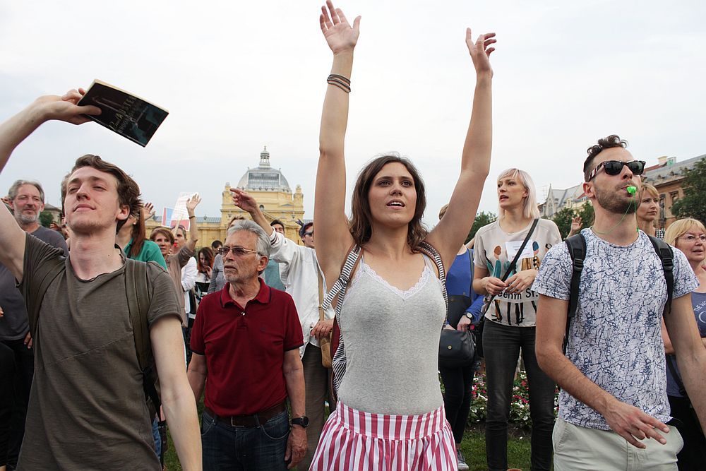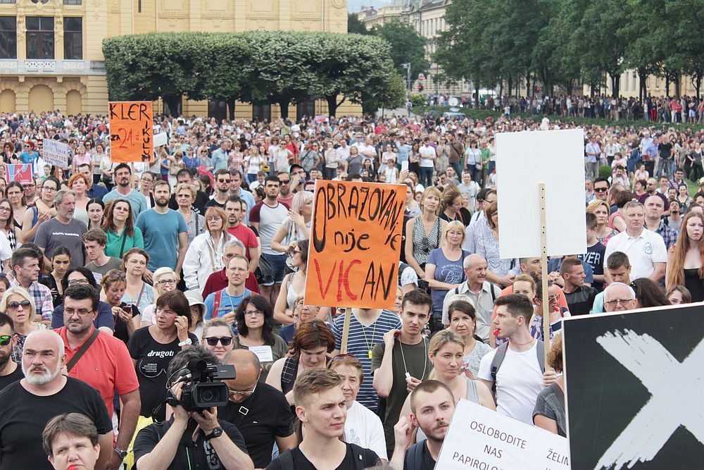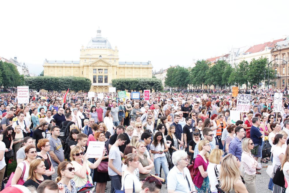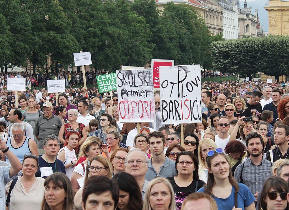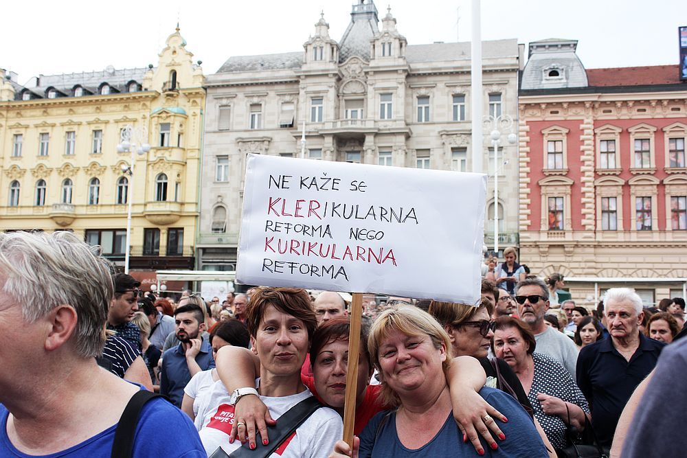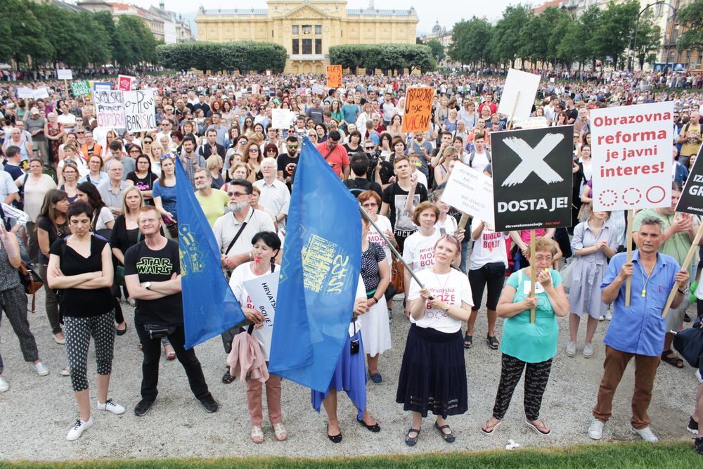 Unatoč pljusku i tuči koja je počela padati uoči prosvjedne akcije "Čekajući tramvaj zvan kurikularna reforma: godinu dana kasnije", oko dvadeset tisuća ljudi izišlo je u Zagrebu na prosvjed protiv sabotiranja kurikularne reforme u duhu odgovarajućem stoljeću u kojem živimo, odnosno za smjenu ministra Pave Barišića i konzervativnih kadrova koji su s nastupom HDZ-ove vlasti na juriš zauzeli pozicije s kojih bi reformirali školski kurikulum onako kako oni smatraju da to treba napraviti. U slučaju da im uspije, nije isključeno da bi o zemlji u školama učili kao o ravnoj ploči. Dakako, karikiramo, ali nije to niti daleko od istine. Kako bilo, dvadeset tisuća ljudi poručilo je snagama konzervativizma, klerikalizma i nazadnjaštva da neće pristati na indoktrinaciju djece u školama. Veliki broj ljudi okupio se na prosvjedu u Rijeci, ali i u Splitu, Zadru ...