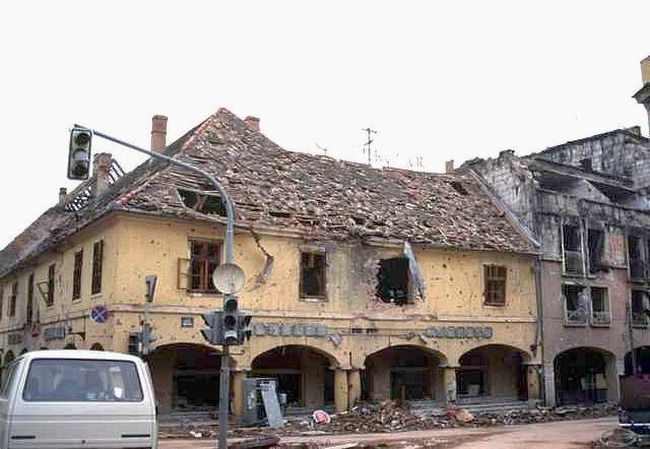 Centar Vukovara uništen granatiranjem JNA (FOTO: Wikimedia/Peter Danton)