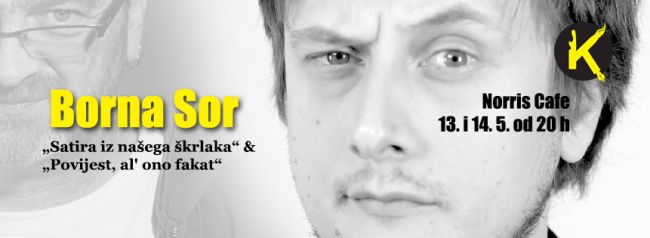 Intervjue koji nasmijavaju cijelu Hrvatsku, a i širu okolicu, Borna Sor vodi kameno ozbiljna lica, dok se brojni poznati političari s kojima je razgovara pred kamerama jedva suzdržavaju da se ne nasmiju. Kameno lice voditelja pred tv-kamerama samo je jedna od njegovih uloga, jer iza kamera on je i urednik, scenarist i pisac u moćnoj gomilici News Bara. Borna Sor na Spikigin dolazi s temama „Satira iz našeg škrlaka“ i „Povijest, al' ono fakat“, a uoči susreta u Norrisu odgovorio je sasvim ozbiljno na nekoliko pitanja o idejama i planovima.