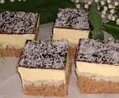 BISKVIT: 4 jaja, 15 dag šećera, 1 žlica kakao praha, 25 dag brašna, prašak za pecivo, 3 bjelanjka, 20 dag kokosa. Umutiti šećer i jaja, smjesi dodati brašno pomiješano s praškom za pecivo i kakaom. Izlijte sve u nauljenu tepsiju. Izlupajte tri bjelanjka s 15 dag šećera i u gusto, lagano umiješati kokos brašno. Tom smjesom premažite masu koju ste prethodno izlili u tepsiju. Sve zajedno peći 10-15 minuta na 180 stupnjeva.