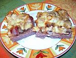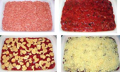 Peći u pećnici oko 30 minuta na 180°C, a nakon pečenja izrežite na krupnije kocke i zapamtite da se može jesti i hladno. Postoji i drugi način pripreme za koji je potrebno: kilogram mljevenog mesa, tri luka, dva stara peciva, dva češnja češnjaka, dva jaja, sol, papar, origano, čaša punomasnog kiselog vrhnja, 30 dag rajčice, 25 dag sira Goude. Luk i češnjak sitno isjeckate, dok peciva nakvasite da omekšaju. Potom pomiješate meso, jaja, peciva, luk, vrhnje i origano. Sve posolite i popaprite, te smjesu namažete u dobro namašćen lim. Rajčicu izrežite na kolutiće i poslažite po smjesi po kojoj naribate Goudu.