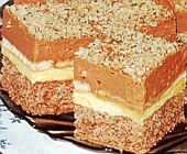 KREMA: 7 dl mlijeka, 6 žumanjka, 2 pudinga od vanilije, 1/2 žlica brašna, 20 dag šećera, 25 dag margarina, 10 dag čokolade, petit keksi. Za kremu razmutiti žumanjke, puding, šećer i pola žlice brašna s malo mlijeka, te sve skuhati u preostalom mlijeku. Ohladiti miješajući. Dodati izrađen margarin. Kremu podijeliti u dva dijela i u jedan dio dodati smekšalu čokoladu. Na pladanj prvo slagati biskvit, pa ga premazati žutom kremom, zatim poslagati petit kekse prethodno namočene u mlijeko, te nakon toga smeđi fil. Vrh kolača obilato posuti mljevenim orasima ili ribanom čokoladom.