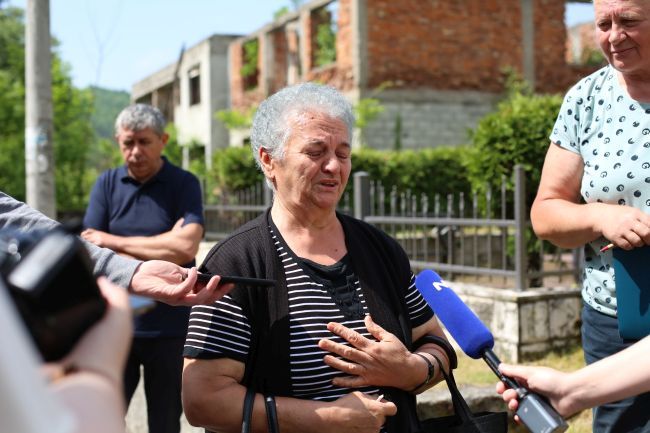 Milka Drljo pred novinarima kod spomenika žrtvama zločina u Trusini (FOTO: Ladislav Tomičić/Lupiga.Com)