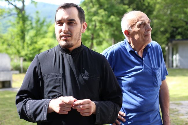 Dolazi konjički paroh Dejan Grčić, mlad čovjek u crnoj mantiji. S njim stiže i stariji mještanin, koji se svakodnevno brine za crkvu i crkveno dvorište.