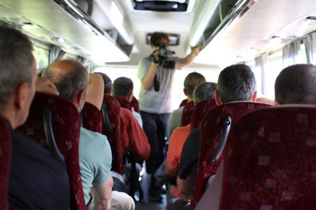 Do Trusine smo stigli malim Hare tours autobusom iz Vogošće, u organizaciji Centra za nenasilnu akciju iz Sarajeva. Oni već godinama okupljaju ratne veterane pa zajedno obilaze mjesta zločina i odaju počast žrtvama stradanja sva tri naroda. Poklone se, polože vijence, razgovaraju, druže se. Dolaze sa svih strana.