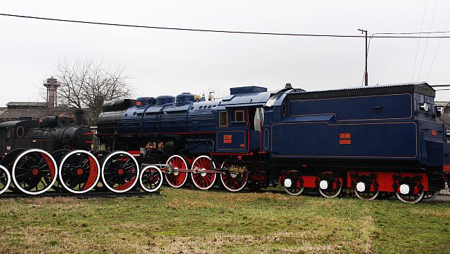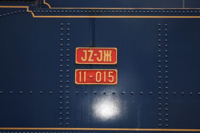 Omalenim dvorištem HŽM-a dominira modra, nedavno obnovljena lokomotiva crveno-bijelih kotača – riječ je o parnjači, jednoj od tri takve, koje su služile za vuču Titovog Plavog vlaka. Parne lokomotive iz serije 11, najbolje u svojoj generaciji, proizvedene su 1947. u mađarskoj tvornici MAVAG, i naizmjence su vukle Plavi vlak dok nisu zamijenjene dizel i dizel električnim lokomotivama. Jedna od tri plave parnjače izložena je danas ispred glavne Železničke stanice Beograd, dok se treća nalazi u fundusu željezničkog muzeja u Ljubljani. Na ovoj zagrebačkoj nalazi se ganz nova dvopismena ploča JŽ-JЖ 11-015: već uvriježena je praksa, rekla nam je ravnateljica Štefanac, da se originalne mesingane ploče mijenjaju replikama od manje skupocjenih materijala – kako bi se spriječile učestale krađe zbog preprodaje sekundarnih sirovina.