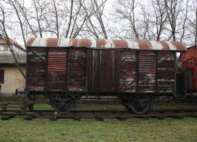 Na drugom kraju dvorišta stari je drveni teretni vagon, u narodu znan i kao stočni vagon, koji je zajedno s "Katicom" dopremljen iz spomen-područja Danice, a potom odložen u dvorište Željezničkog muzeja.