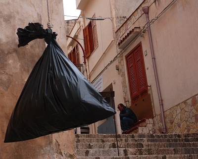 Uske ulice na Siciliji su od pamtivijeka normalna stvar. No, što je u Castelmar del Golfu Garibaldiju nekad bilo dobro za zaštitu od sunca, danas nije dobro za odvoz komunalnog otpada. Ipak, domišljati domaći našli su jednostavno rješenje. Uopće ne koriste kante i kontejnere već smeće strpaju u vreće i onda ih kukom objese niz balkon.