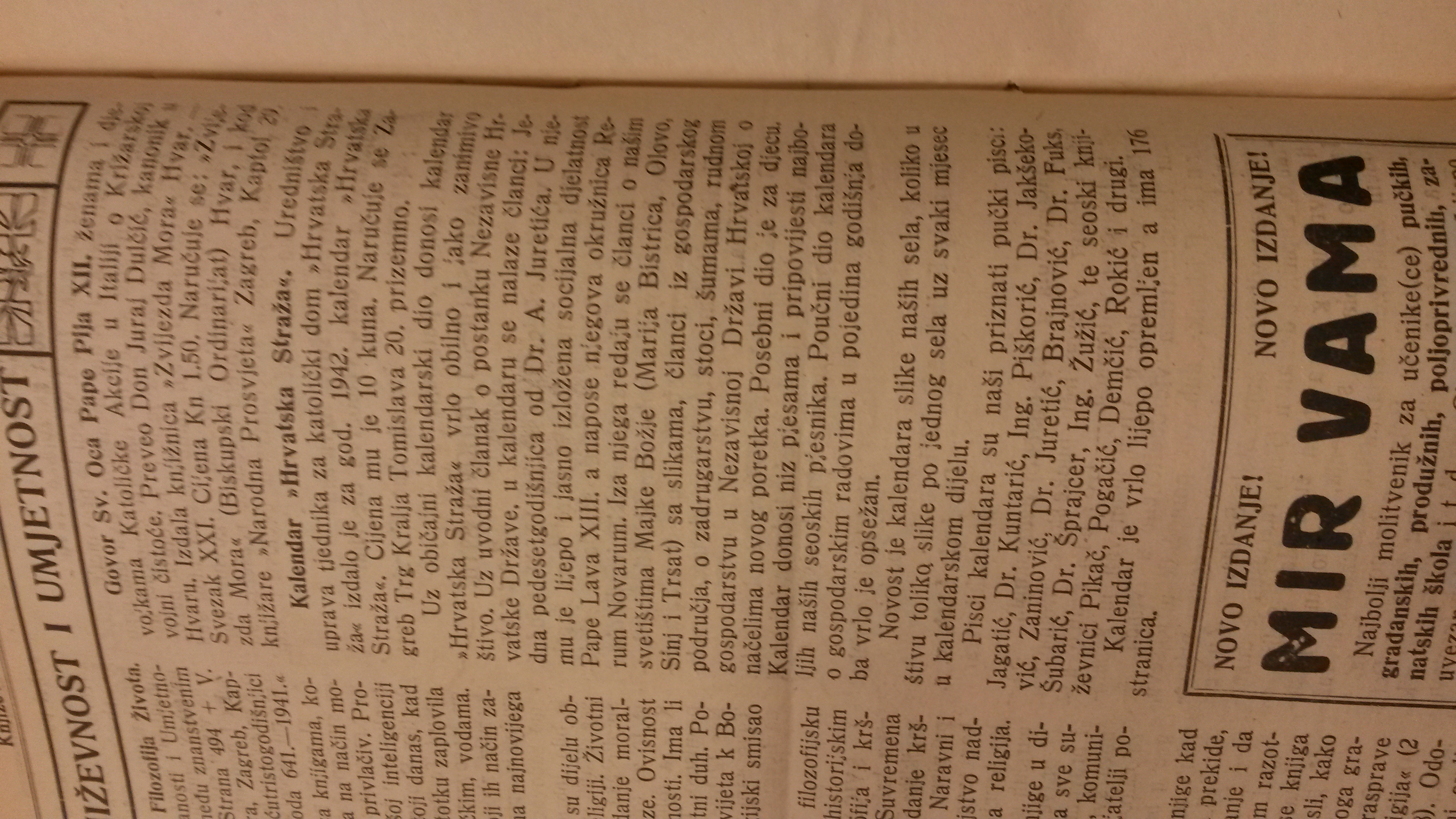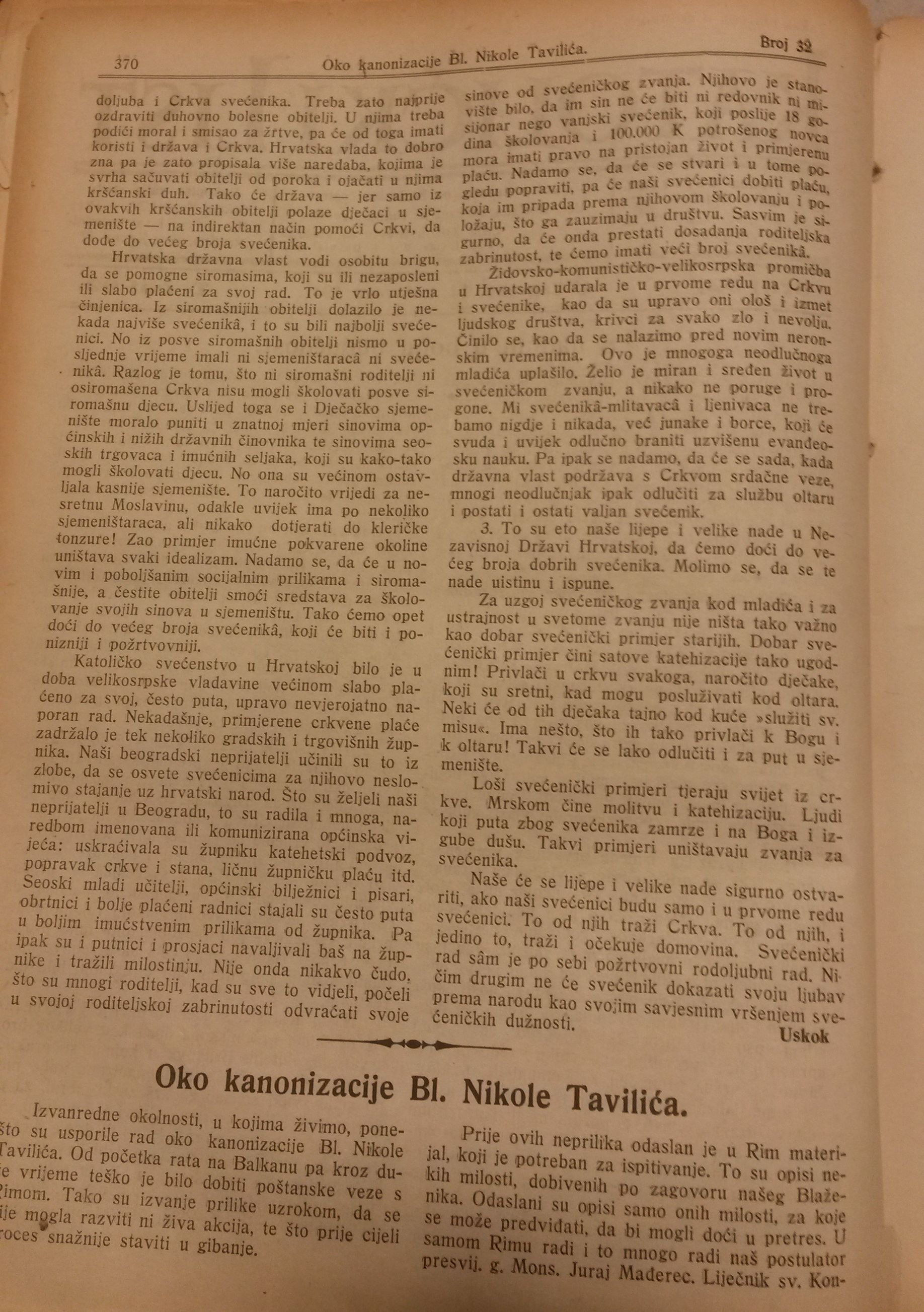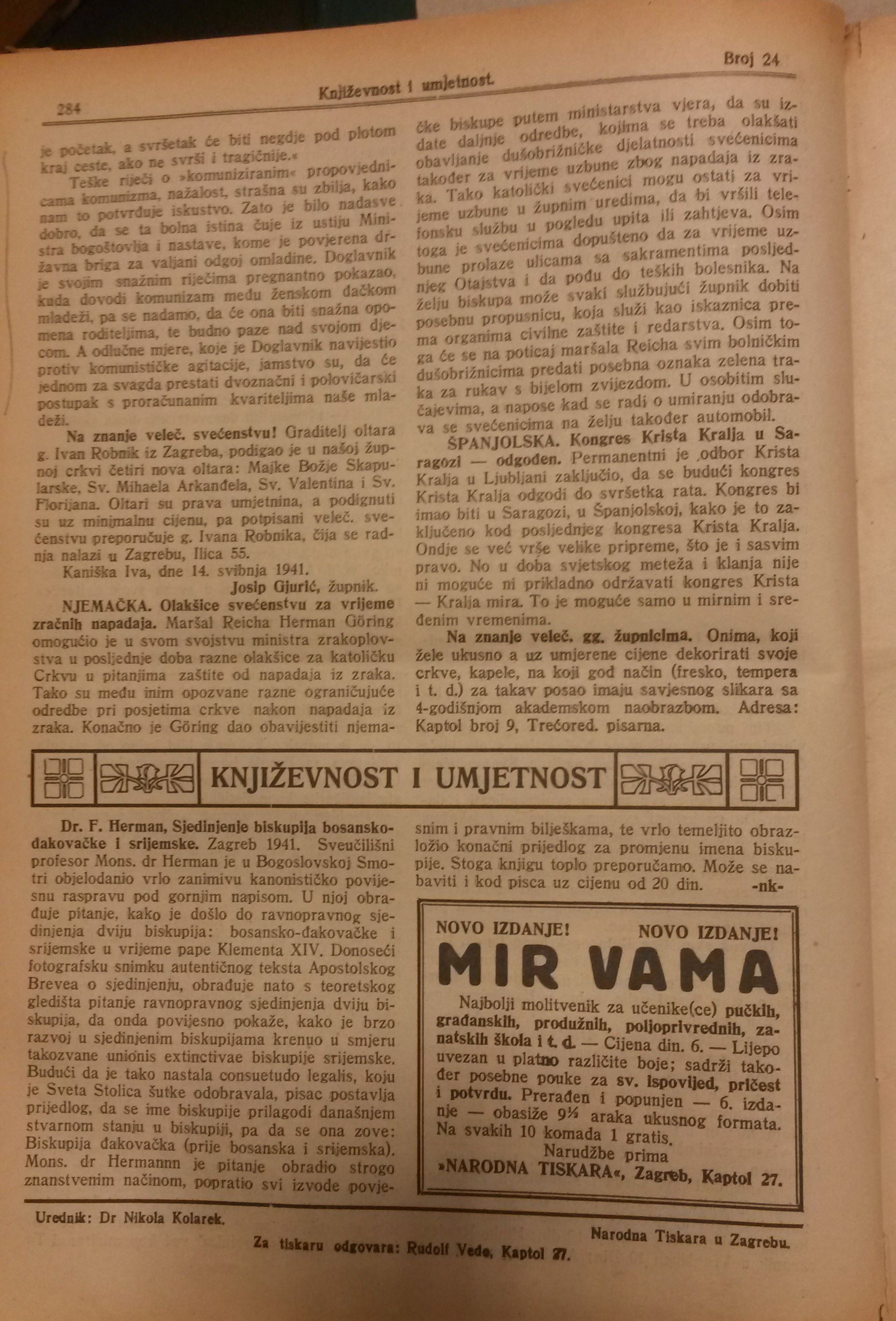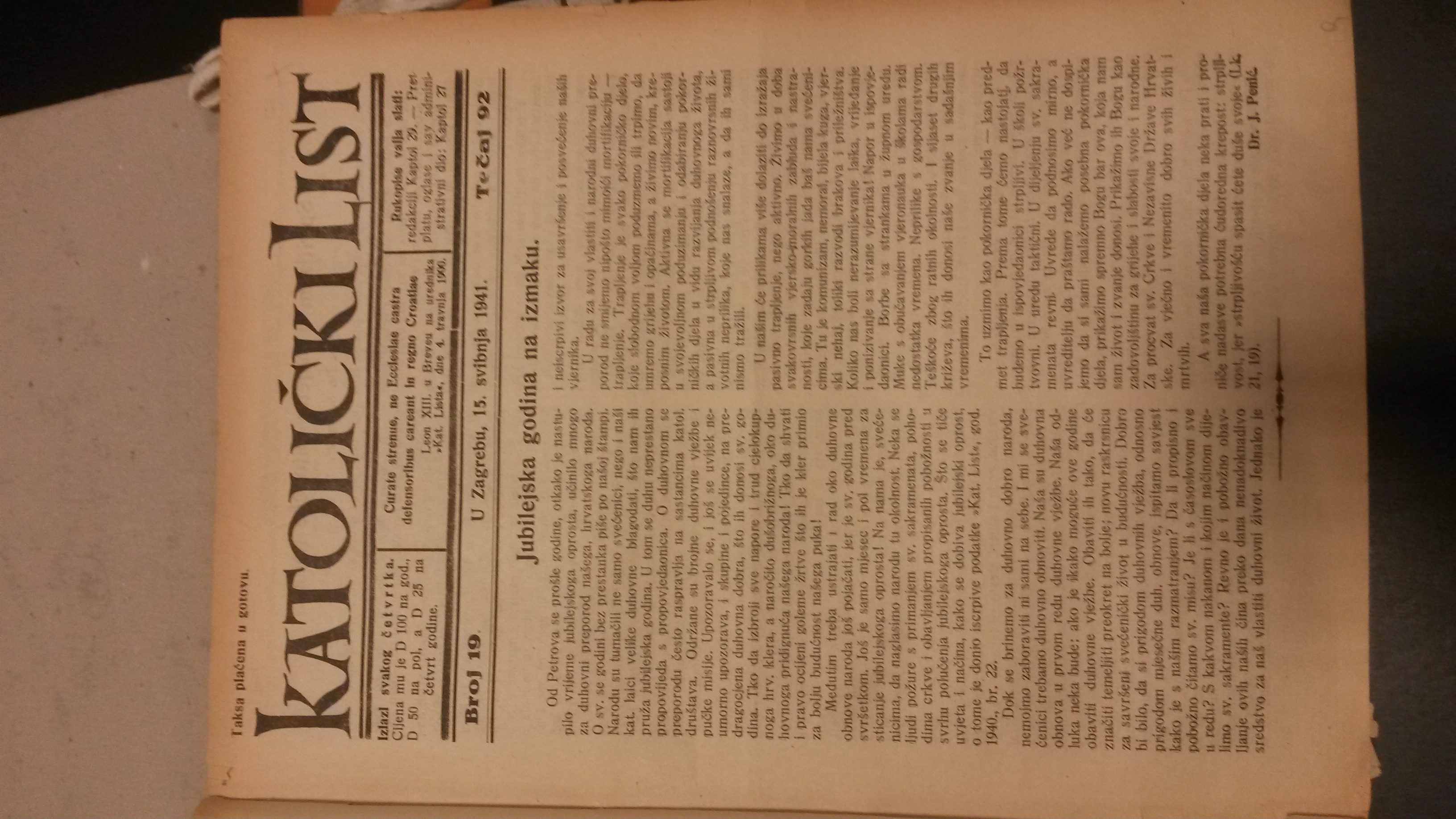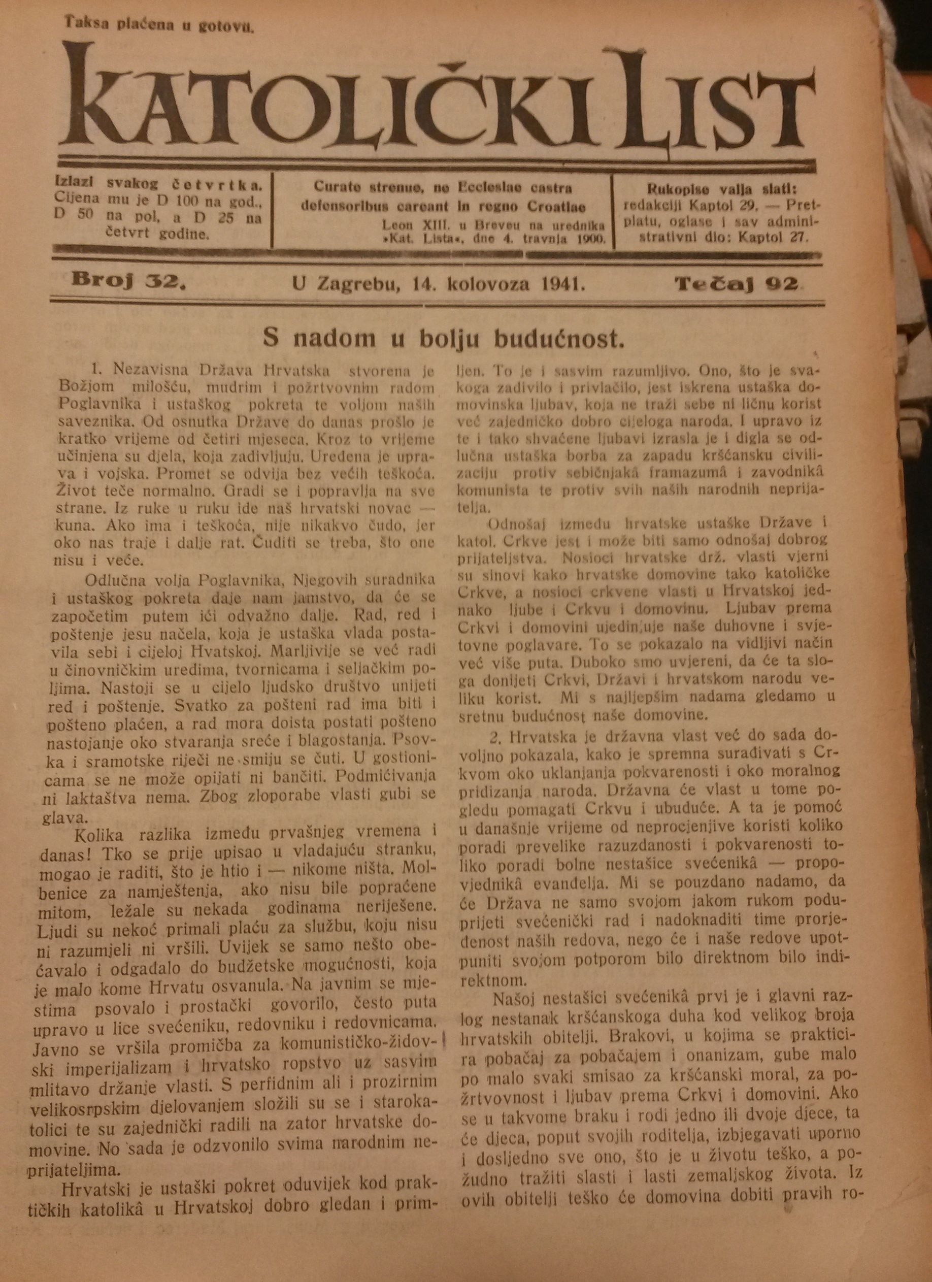 Ovaj tekst nastao je u sklopu projekta "Katolički tisak u Drugom svjetskom ratu" koji je podržalo Ministarstvo kulture temeljem Programa ugovaranja novinarskih radova u neprofitnim medijima