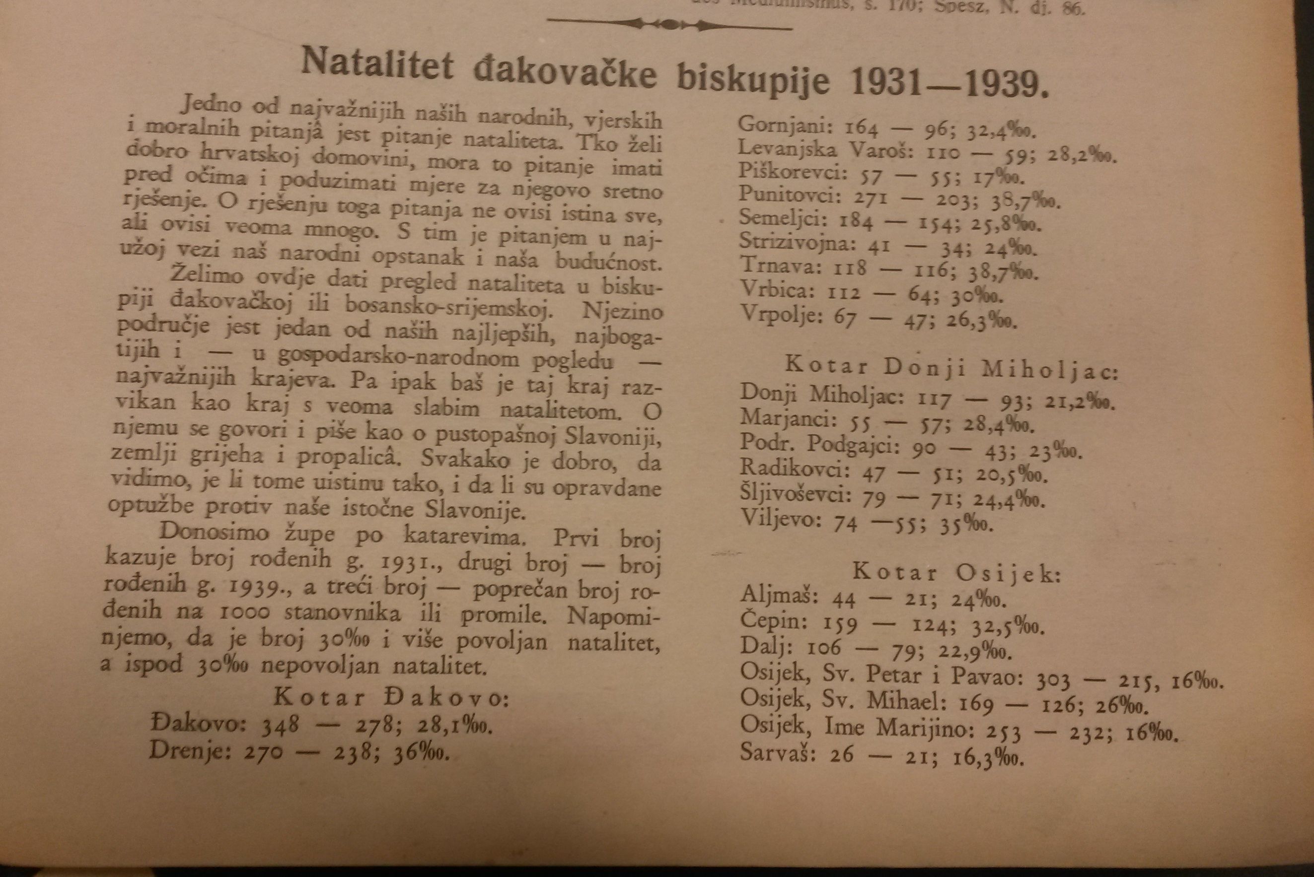 "Nikakova ispričavanja 'Nismo mi krive', kako ih je iznijela Nada Sremec u svojoj nedavnoj knjizi, ne mogu skinuti odgovornost s naših žena i muškaraca", kaže Budak. "Napominjemo da je broj 30 promila i više povoljan natalitet, a ispod 30 nepovoljan", piše se u članku o Đakovačkoj biskupiji, u kojoj on često prelazi 30 posto, ali je i dalje označen kao nepovoljan. (Natalitet u Hrvatskoj u 2014. bio je 9,3 promila).