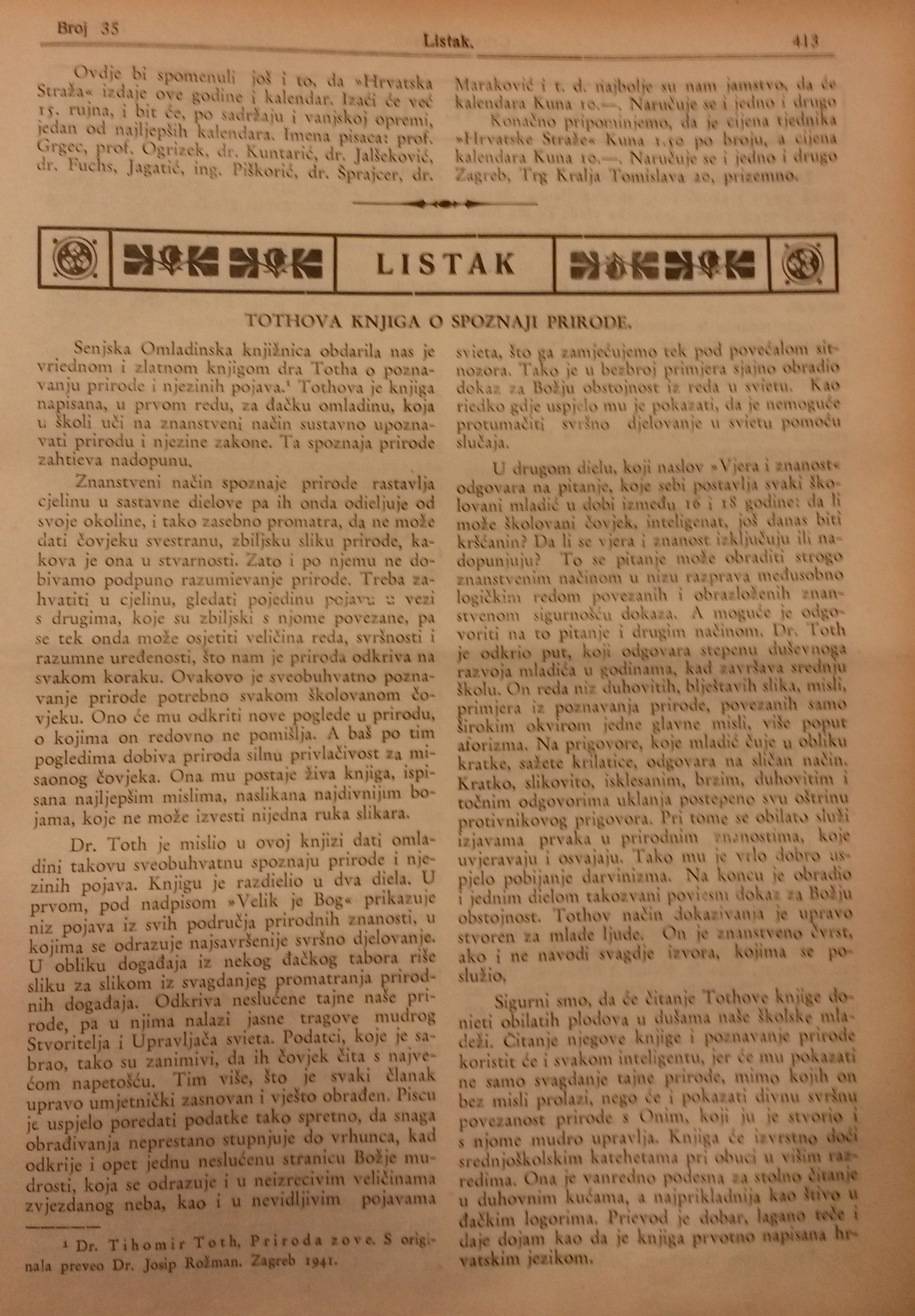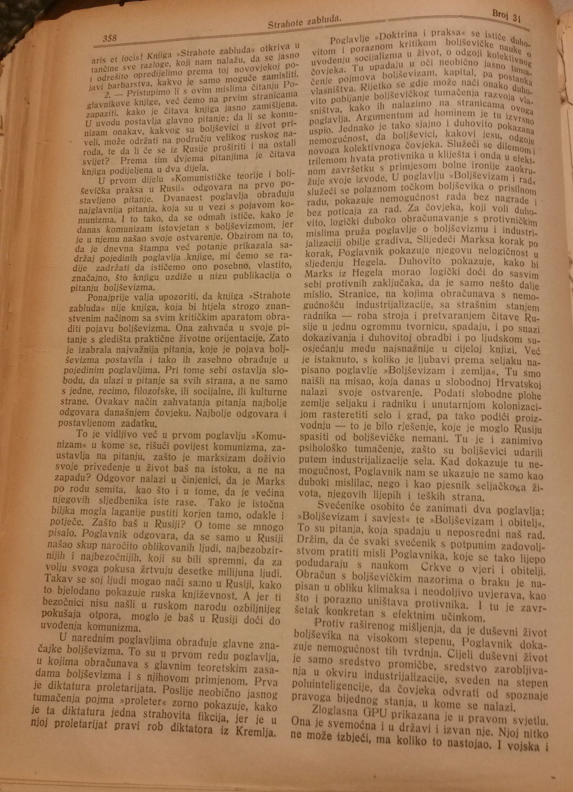 Naslovnica broja 36 usmjerena je protiv komunističke literature - "naklade i spisi o 'boljševičkom raju' nikli su kao gljive iza kiše". Prozivaju se izdavačke kuće Minerva, Epoha, Nolit i Binoza.