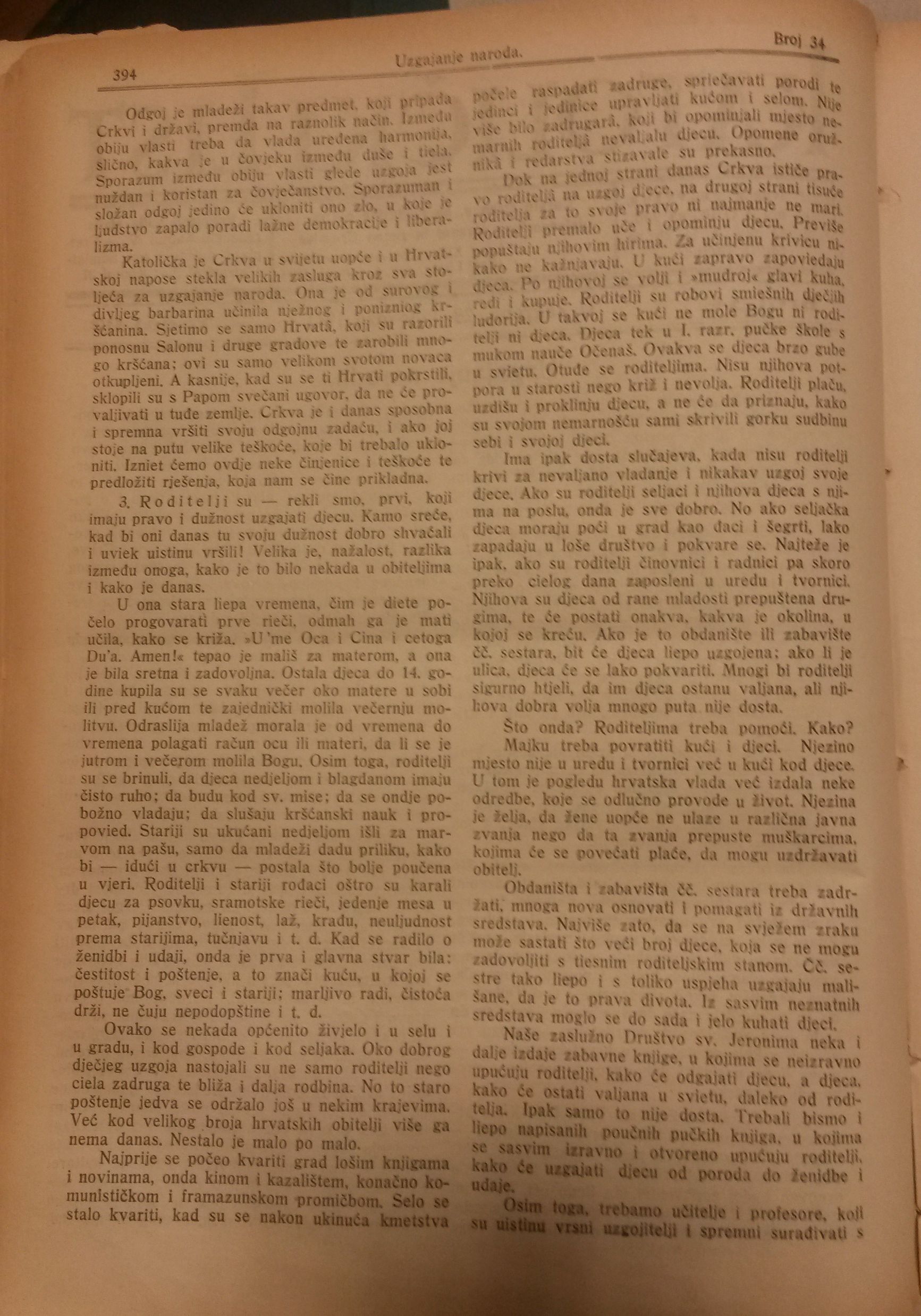 Iduća naslovnica posvećena je odgoju, nuždi da suzbije val opće pokvarenosti, pa "uzgojni val treba obuhvatiti cio narod, omladinu i starije, svim sredstvima i čimbenicima". Naopakosti je došao kraj - NDH ići će u pogledu uzgajanja zdravim i sigurnim putem te ustaškom odlučnošću ukloniti sve prepreke. Država u tome treba pomagati radu Crkve, i to se napokon događa, ali odgovornost je i na roditeljima koji previše popuštaju hirovima svoje djece.