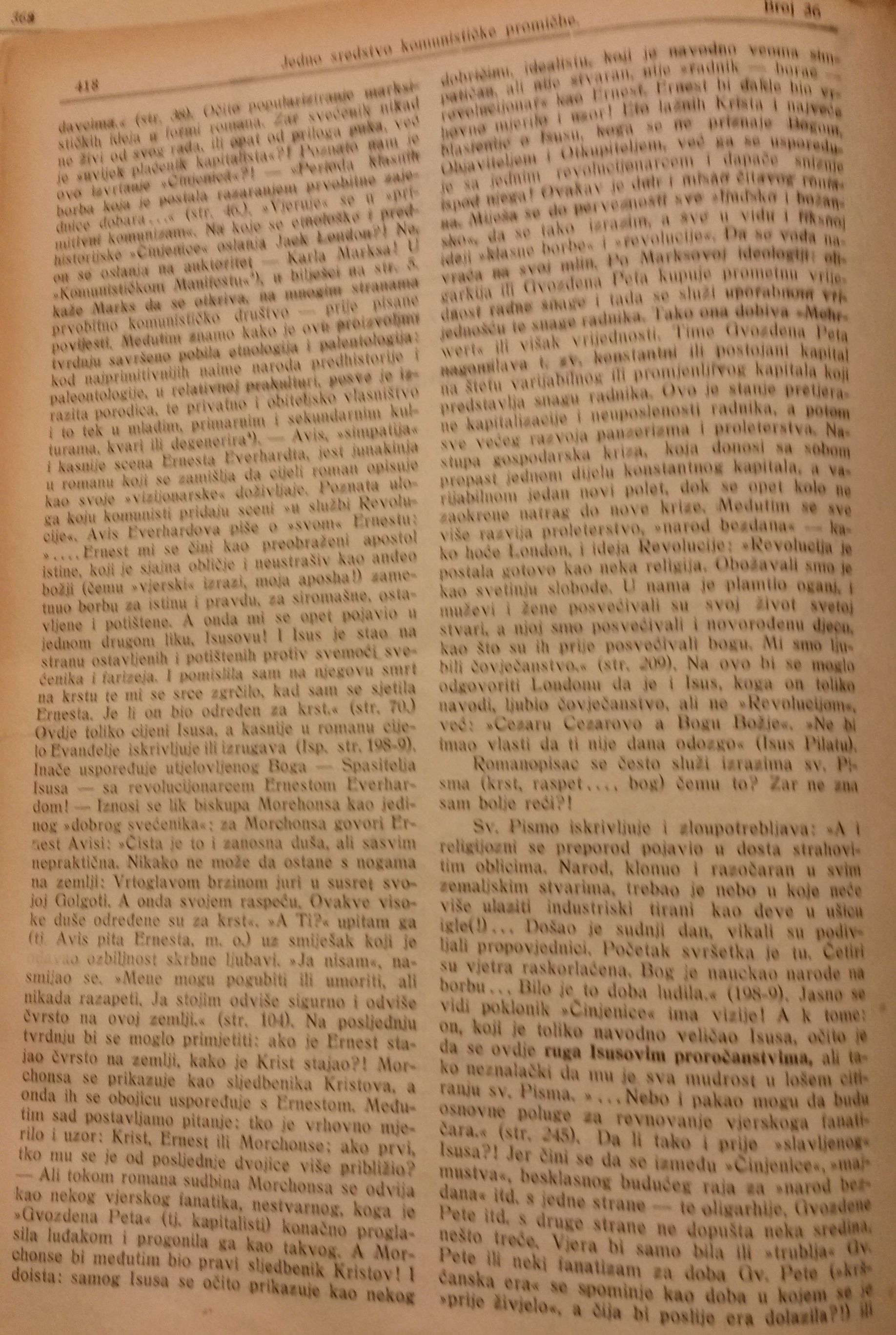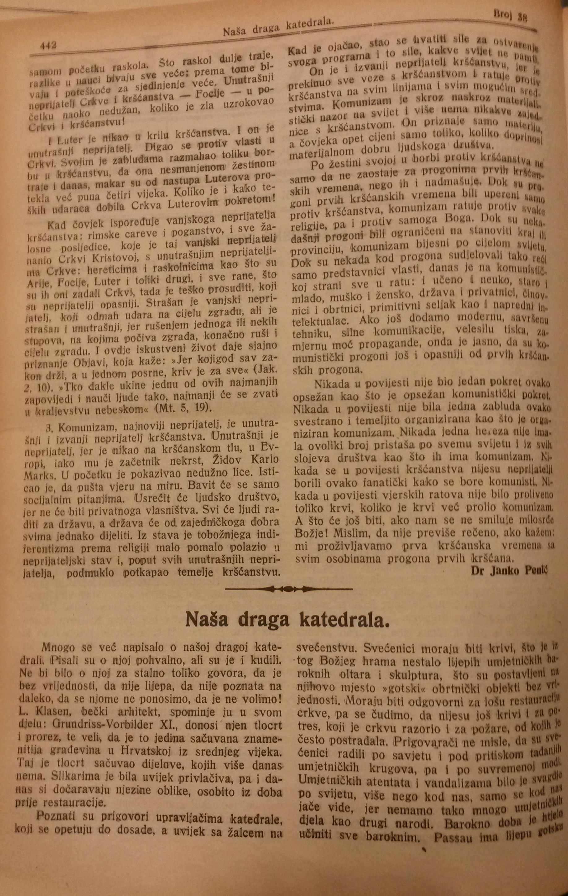 Janko Penić u broju 38 ponovno piše o komunizmu kao neprijatelju kršćanstva - "nikao je na kršćanskom tlu, u Evropi, iako mu je začetnik nekrst, Židov Karlo Marks".