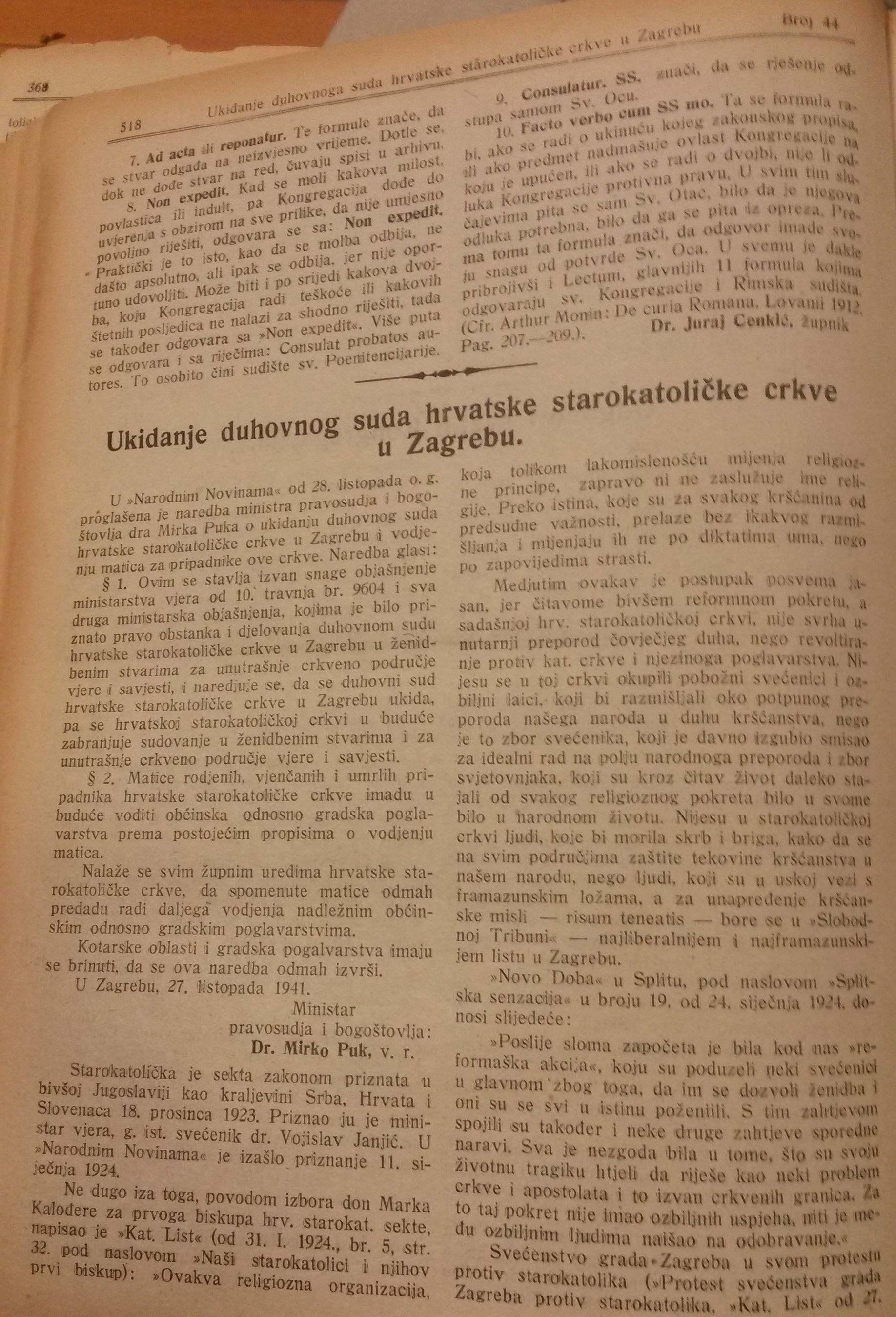 Vijest da je država oduzela javne ovlasti Starokatoličkoj crkvi primljena je sa zadovoljstvom u Katoličkom listu, jer ona "zapravo ni ne zaslužuje ime religije", a i svrha joj je - "revoltiranje protiv Katoličke crkve i njezinoga poglavarstva". To je sekta i "niti je katolička niti je hrvatska", a priznala ju je, dakako, Beogradska vlada. Ovu odluku ministra pravosuđa NDH smatraju dalekovidnom i usmjerenom ka napretku hrvatskog naroda.