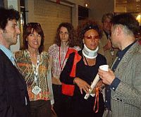 Jučer nam bio party. Sve je prošlo više nego dobro. Bila goooooomila ljudi, bio i Kusto, ostao više od sata (a najavio je da će ostati samo pola sata), bila cela ekipa filma i sl. Ja sam uglavnom bežala od Srba, koje ne mogu očima da vidim, i stajala na vratima kao svaka dobra domaćica - dočekivala goste.