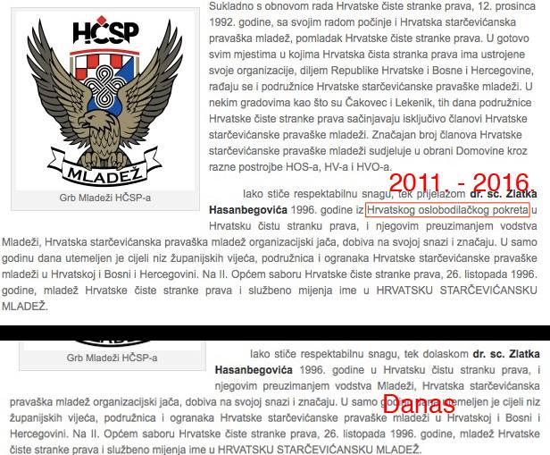 To nas je podsjetilo na još dvije nedavne intervencije koje se dešavaju s člancima vezanim uz (ne)popularnog ministra. Prvi slučaj se desio na stranici HČSP-a čiji je Hasanbegović bio član od 1996. do 2015., a gdje se od 2011. godine, od kad internet arhive pamte ovu stranicu moglo pročitati: «Iako stiče respektabilnu snagu, tek prijelazom dr. sc. Zlatka Hasanbegovića 1996. godine iz Hrvatskog oslobodilačkog pokreta u Hrvatsku čistu stranku prava, i njegovim preuzimanjem vodstva Mladeži, Hrvatska starčevićanska pravaška mladež organizacijski jača, dobiva na svojoj snazi i značaju.»