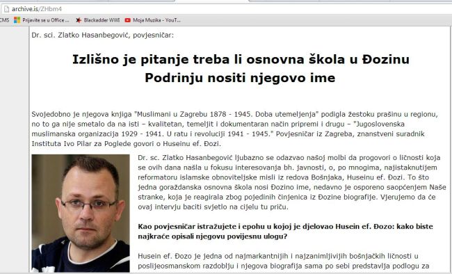 Nakon što se prekjučer u medijima i na društvenim mrežama proširio link na intervju s ministrom kulture Zlatkom Hasanbegovićem na web stranici posvećenoj veličanju SS Handžar divizije, u kojem on hvali i veliča nacističkog imama Huseina ef. Đozu i relativizira «fašizam» i «antifašizam» te ih stavlja pod navodnike, intervju je naglo nestao. No, na sreću, internet sve pamti, pa se intervju može s lakoćom naći na izvoru tj. portalu Oslobođenje.ba ili preko arhive Google cachea zaviriti u prikaz Handžar stranice na dan 25. siječnja.