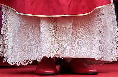 E ali onda je fra Ive zagrmijo sa oltara: 'Neće nama neki pizdun iz Vatikana naređivat štašmo mi radit u svojoj zemlji!' Tu je u Gospi od Cukra uletila mrkla tišinčuga. Fra Ive je odozgo streljao sa očima po rulji. Onda je on dreknijo: 'Ako mi oćemo svoju zemlju prodat golferima za dvaipo soma eura po kvadratu, onda se nema šta ko iz Vatikana mišat, pa bija on stoput papa! Mišmo svoje nade polagat u našeg Boga, a svoj keš u našu banku!' Onda je u Gospi od Cukra razvalijo se revijski amplauz. Onaj barba Jole je skočijo i viknijo je: 'Bravo fra Ive, svaka ti piva! Ne zasluživa ti papan da se zove papa!' Ona Plazibatka je viknila: 'Tako je! Oćemo spa i velnes, a ne švicarsku gardu!' Ona Kragićka je viknila: 'Zavidajmo ga Šrafcigeru!' Fra Ive je nanišanijo sa prstom prema prozoru i viknijo je: 'Ako se prika oće brčit, eno mu crkva Svetog Petra u Rimu pa nek tamo čini šta ga je volja! Ko mu je kriv šta od Sikstinske kapele ne može napravit eskluzivni risort! Nek se priseli u Terme Čatež!'