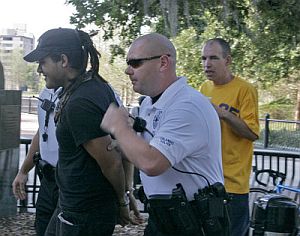 Gotovo komična situacija odvila se 4. travnja ove godine kada je nekoliko policajaca u civilu čučalo u grmlju brojeći porcije gulaša koje je Eric podijelio gladnima u parku. Kada je taj aktivist Food not Bombs (FMB) zagrabio tridesetu porciju iskočili su vitlajući zlatnim značkama te su, služeći i štiteći, zgrabili kazan i Erica te ih skupa odveli u stanicu. Kazan je završio u policiji kao dokazni materijal, a FNB-ovac kao osumnjičenik za kršenje gradske odredbe o zabrani hranjenja veće grupe ljudi.
