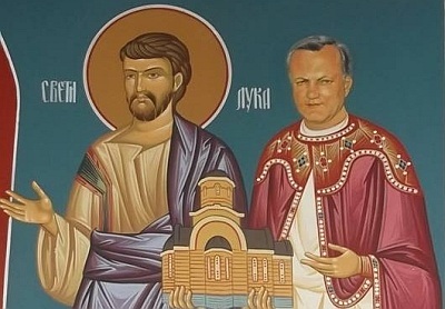 Osim mafijaša, biznismeni i političari takođe se pojavljuju kao ktitori crkava. Miodrag Nikolić, član poslaničke grupe Srpske napredne stranke (SNS) u Skupštini Srbije, ovekovečen je na fresci crkve u Rakitovu blizu Jagodine, čiji je ktitor. U odgovoru Nikolićeve firme Feman iz Jagodine, navodi se da je ova freska (slika iznad, levo) oslikana na predlog tadašnjeg Vladike šumadijskog Save koji je crkvu i osveštao.