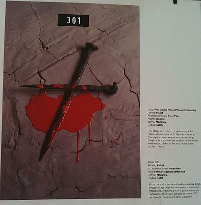 Ruske trupe slomile su mađarsku revoluciju 1956. godine. Veliki broj civila je ubijen i sahranjen u masovnim grobnicama. Jedan od grobova, gdje je sahranjen revolucionar Imre Nagy, označen je brojem 301. Krv na ovom posteru ima oblik Mađarske.