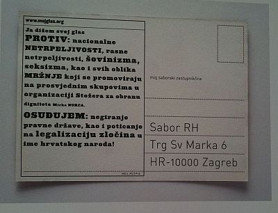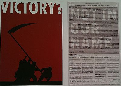 "Ne u naše ime" naziv je koalicije Amerikanaca posvećenih miru i građanskim slobodama za sve. Ovaj rad dio je serije novinskih oglasa tiskanih na stranicama američkih novina. Predstavlja iskaz o savjesti i imena više tisuća ljudi koji su potpisali otvoreno pismo Georgeu Bushu objavljeno u New York Timesu 19. studenog 2002. godine. Autori - Shella Levrant de Bretteville, Scot Stowell i Susan Barber.