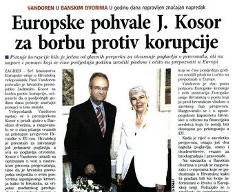 Vjesnik - "Europske pohvale J. Kosor za borbu protiv korupcije"