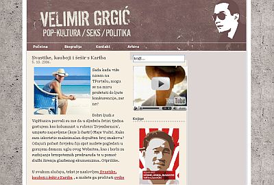 Osim suradnje na sajtu ruralnagorila.com Velimir Grgić nedavno je otvorio svoje vlastite web stranice. Nalaze se na adresi www.velimir-grgic.com i na njima Grgić svakodnevno piše o popkulturi, seksu, politici i ostalim temama koje mu zaokupljaju pažnju i vrijeme. Kako je nedavno prekinuo suradnju s T-portalom, na svom će nas sajtu u narednom periodu podsjetiti na neke svoje tekstove koji, kako kaže "nisu tako lako dostupni u arhivi, a imaju nostalgičnu vrijednost ...", a od svježijih stvari na sajtu se ističe višedijelni putopis u kojemu Grgić opisuje svoj dvotjedni boravak u Koreji. Stranica svakako zaslužuje redovito praćenje, posebno ljubiteljima moderne glazbe i filmova neholivudske produkcije.