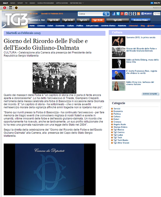Zakonom proglašenim 30. ožujka 2004. godine Italija je 10. veljače (dan kada je 1947. godine potpisan Ugovor o miru s Jugoslavijom) ove godine deseti put obilježila Dan sjećanja »s ciljem očuvanja i obnavljanja sjećanja na tragediju Talijana i na sve žrtve fojbi, na egzodus Istrana, Riječana i Dalmatinaca iz njihove postojbine nakon Drugog svjetskog rata te na složena zbivanja na istočnoj granici«.