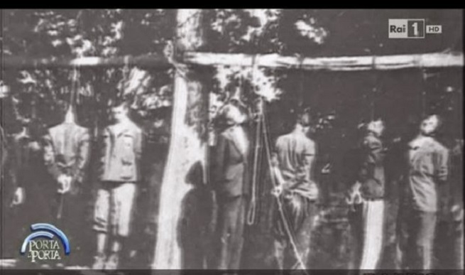 Talijanska verzija "Otvorenog" na Dan sjećanja patnje masovnih egzekucija Talijana ilustrira vješanjem partizana (SCREENSHOT: RAI.IT)