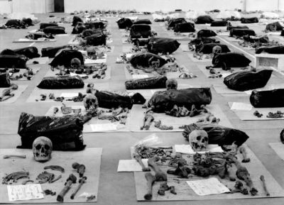 Obrada posmrtnih ostataka pronađenih u jednoj od masovnih grobnica (FOTO: Tarik Samarah)