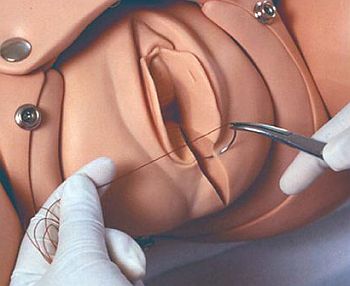Dakako, kad nešto izrežete, posebno ako ste liječnik, onda nije zgodno da to ne vratite u prvobitno stanje. Dakle, na ovom komadiću plastike i silikona, pitomci akademije za rađanje vježbaju šivanje. Možda nije na odmet spomenuti da nakon toga neko vrijeme nema seksa. Nema i točka