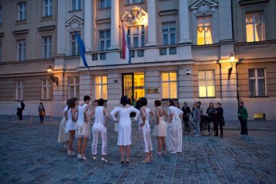 Participativni performans Nives Sertić i Sonje Pregrad održan ovoga utorka. Rad problematizira mehanizme kojima državni sistem kontolira javni prostor kao i nemogućnost uspostave bilo kakve komunikacije s tim sistemom. Nametanjem svoje represivne moći koja se doslovno, ali i metaforički manifestira kroz nadzorne kamere, sistem je okupirao javni prostor ne ostavljajući mjesta običnoj, opuštenoj svakodnevici. Umjetnička forma performansa ovdje postaje politički čin kojim se problem artikulira. Represivna moć sistema želi se osvijestiti na razini pojedinca koji dobiva mogućnost da na postavljeni koncept odgovori svojom verzijom čina – nizom javno izvedenih gesti pred nadzornim kamerama.