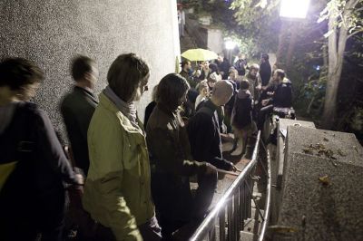 Urbana intervencija "Muzički rukohvat" održana je na Zakmardijevim stubama. paja vremenske i prostorne udaljenosti, kreće se putevima prisjećanja na ugodne trenutke koje je posjetitelj gornjogradske jezgre mogao doživjeti (npr. vrijeme popularnog Glazbenog paviljona na Strossu). Specifičnost lokacije postava rukohvata, prolaza ili šetališta, spaja i stvara intimne i inspirativne kulise za svakog posjetitelja, te je isti u ulozi davatelja i primatelja takvih podražaja. Oslobađajuća nota/melodija koja proizlazi iz rada širi spektar novog društvenog susreta, aktivira i revitalizira socijalno-prostorni ambijent.