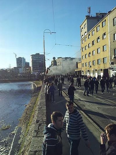 Preko puta Miljacke stajali su ljudi na platou Skenderije i posmatrali šta se dešava. Ispred zgrade Kantona je bila nekoliko hiljada ljudi, i vidio sam kako gore vrata na centralnom ulazu u zgradu. Duh pobune je bio pušten i vidjelo se da ga više niko neće moći kontrolisati.