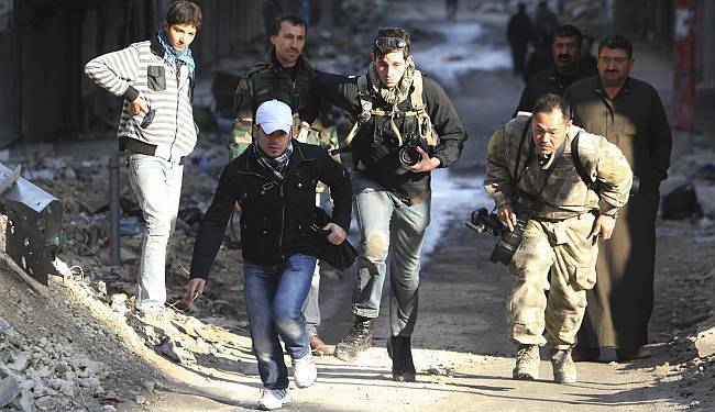 Govoriti o onome što se događa u Siriji može se ulaskom u dio pod kontrolom snaga sklonih predsjedniku Assadu no tada je potrebno ići u pratnji službenika Ministarstva informiranja. Gradska područja koja graniče s onima pobunjenika ili džihadista konstantno su pod minobacačkom paljbom. Sigurnost na putovima između većih gradova poput Alepa i glavnog grada Damaska svakodnevno se mijenja, ovisno o tome tko napreduje na frontu. U dijelovima pod kontrolom predsjednikovih snaga vrebaju snajperi dok se s druge strane gdje su pobunjenici, ili pak treće gdje su džihadisti, umire pod raketama borbenih aviona. Brojni freelance novinari ulaze u zemlju iz Turske ili Libanona u područja koja drže pobunjenici.