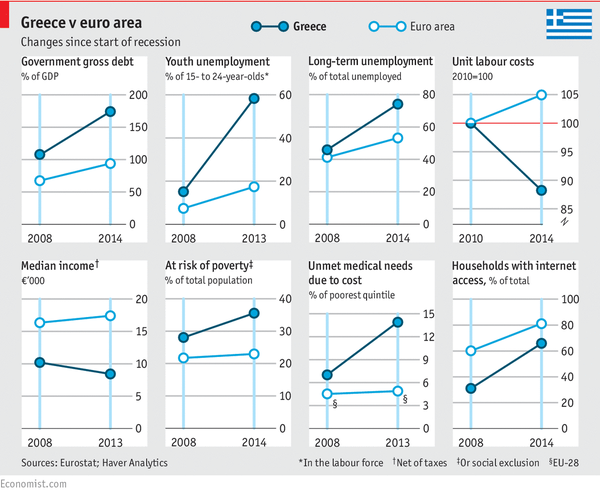 Teško je, gotovo nemoguće, povjerovati da Angele Merkel, Wolfgang Schäuble i njihovi partneri ne razumiju kako je Grčki dug neodrživ. Da mjere štednje Grčku guraju još dublje u krizu i da u tim uvjetima, sve i da hoće, dug ne mogu vratiti. Nemoguće je i da su samo slijepo dosljedni moralnom imperativu kako se dug bez pogovora mora vratiti jer ni sami materijalne dugove za reparacije poslije Drugog svjetskog rata nikada nisu vratili. Da jesu, i svijet i Europa i Njemačka danas bi drugačije izgledali. Moguće da bi još uvijek bili u dva dijela. Ako im je pak jasno da Grčka dug ne može vratiti, čemu treniranje strogoće prema Grcima? Nema sumnje, ulozi su veliki. Ako EU popusti Grčkoj neće proći puno vremena pojavit će se i drugi dužnici, pojaviti će se potreba da se čitava premisa o krizi u kojoj grca EU, u dogledno vrijeme promijeni. Dolaskom nove grčke vlade promijenili su se odnosi u EU i više ne postoji unisoni stav oko mjera štednje. Ukoliko se pak mjere štednje neće provesti u Grčkoj, a neće barem ne onako kako je to potpisala prošla grčka vlada, onda one ne mogu vrijediti ni u ostalim zemljama. No, zašto bi Njemačka odustala od svojih zahtjeva kada pred njom stoji tek mala, do grla zadužena Grčka?