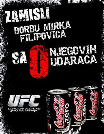 Aludirajući otvoreno na onu bezukusnu splačinu nazvanu Coca Cola Zero, nepoznati je zlonamjernik ili šaljivdžija za Mirka Filipovića, koji je u šahovnica kockastom šorcu tijekom svoje karijere nebrojeno mnogo protivnika brzinski srušio na pod, "sredio" plakat koji kaže: