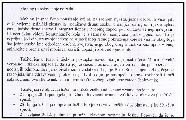 Dio presude kojom je Marina Pavičić dokazala zlostavljanje (FOTO: Lupiga.Com)